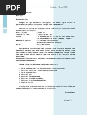 Yuk simak 11+ contoh surat lamaran kerja perusahaan imip.